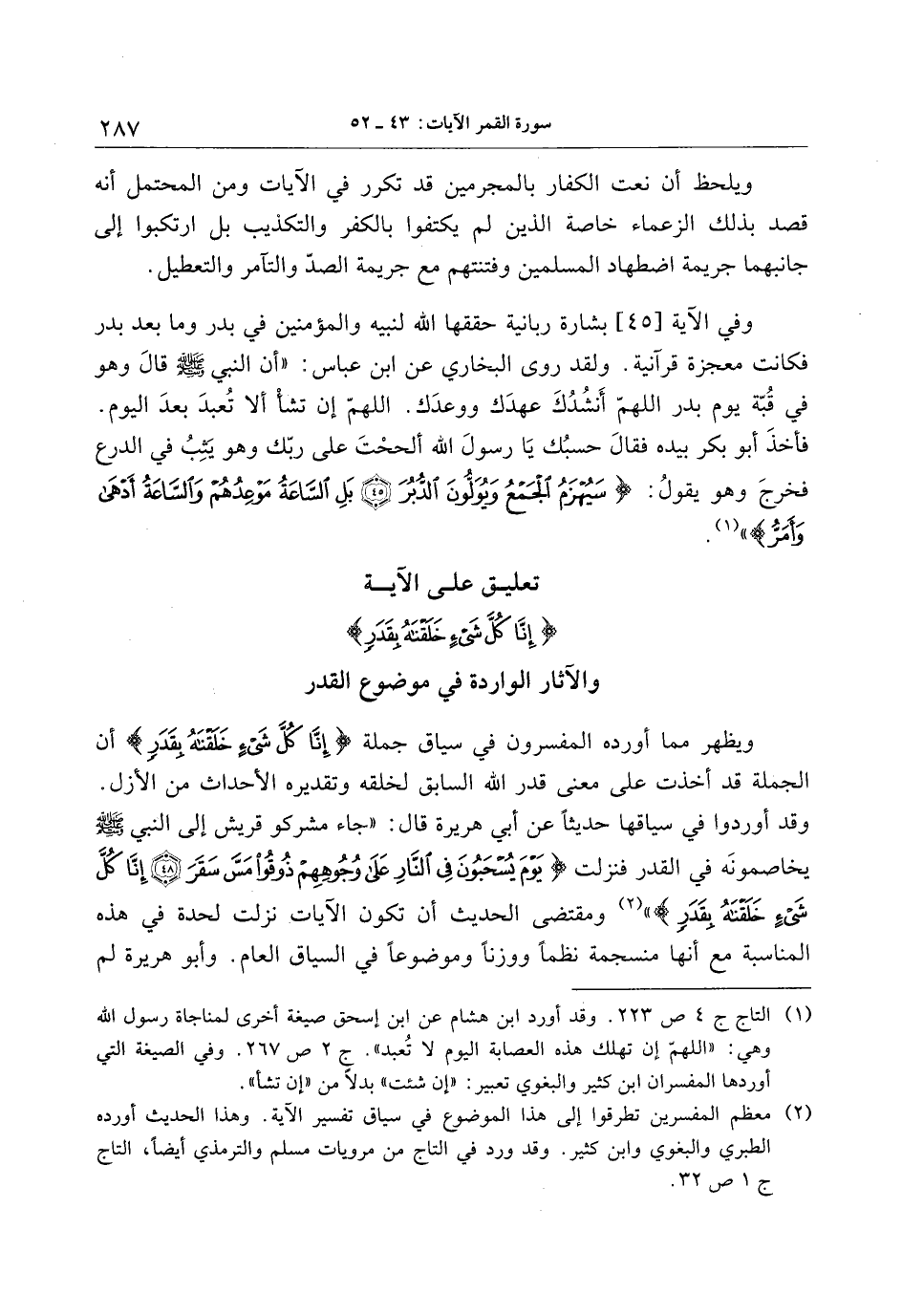 تعليق على الآية إِنَّا كُلَّ شَيْءٍ خَلَقْناهُ بِقَدَرٍ والآثار الواردة في موضوع القدر