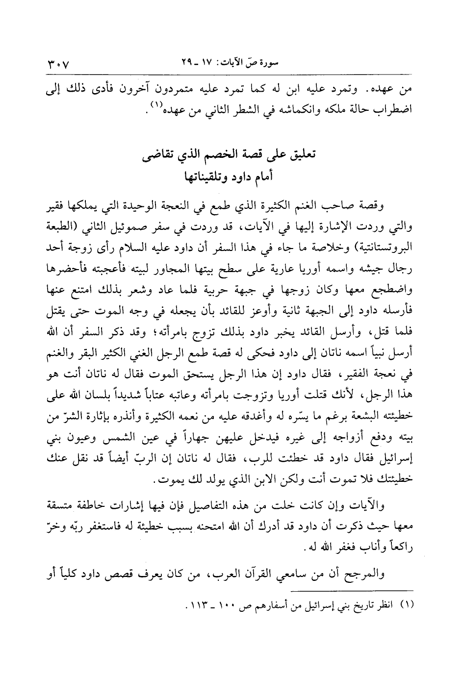 (1) انظر تاريخ بني إسرائيل من أسفارهم ص 100- 113.