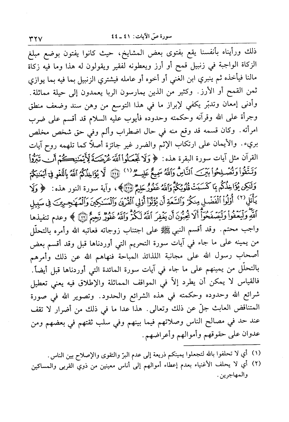 (2) أي لا يحلف الأغنياء بعدم إعطاء أموالهم إلى أناس معينين من ذوي القربى والمساكين والمهاجرين.