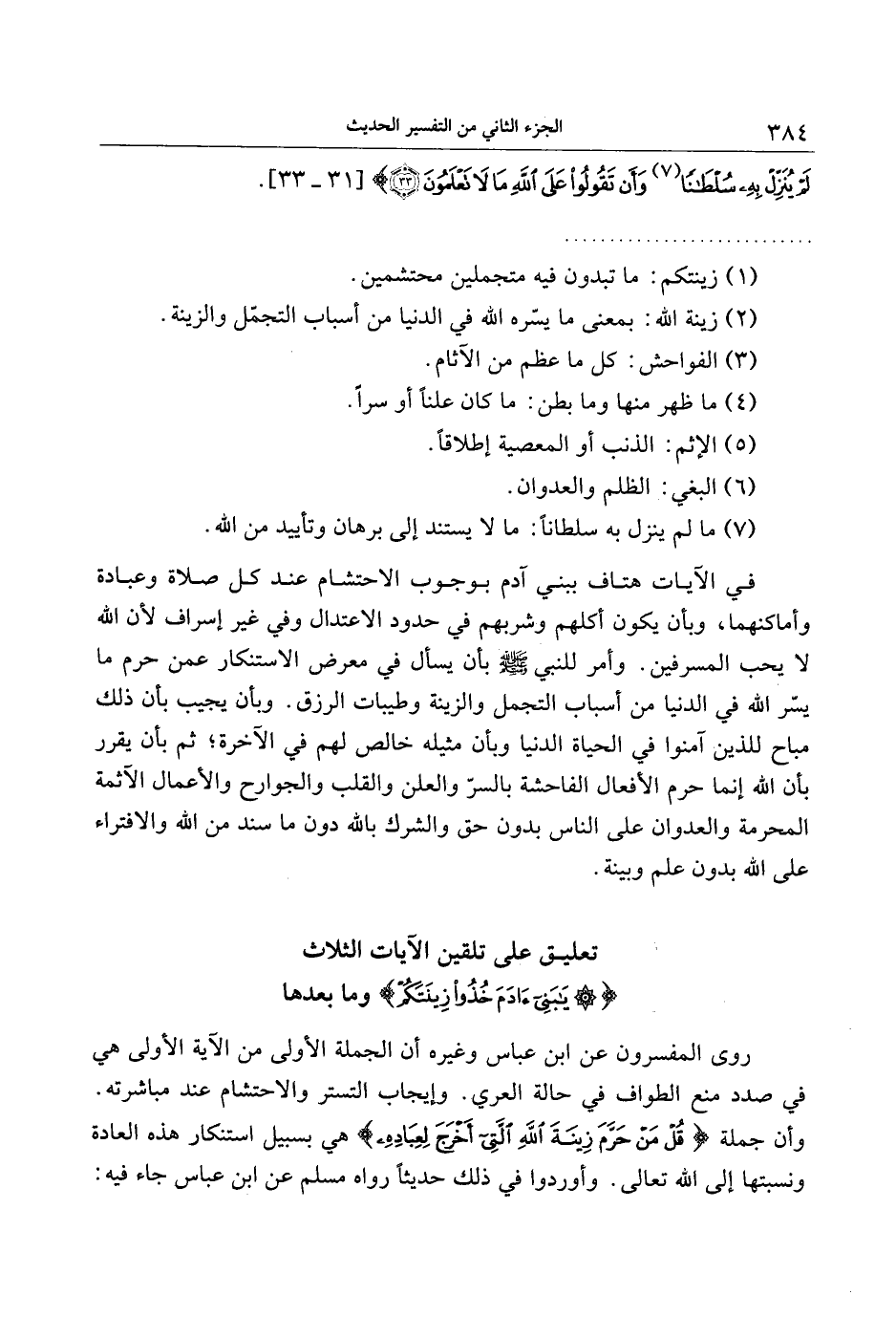 تعليق على تلقين الآيات الثلاث يا بَنِي آدَمَ خُذُوا زِينَتَكُمْ وما بعدها