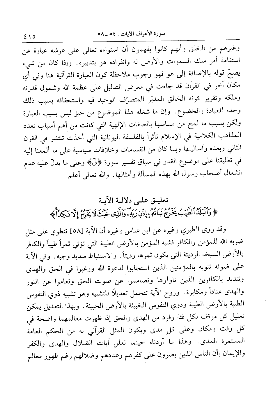 تعليق على دلالة الآية وَالْبَلَدُ الطَّيِّبُ يَخْرُجُ نَباتُهُ بِإِذْنِ رَبِّهِ وَالَّذِي خَبُثَ لا يَخْرُجُ إِلَّا نَكِداً