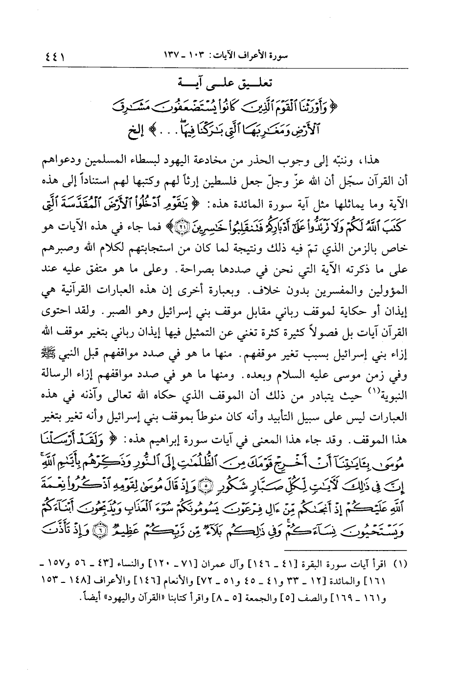(1) اقرأ آيات سورة البقرة [41- 146] وآل عمران [71- 120] والنساء [43- 56 و 157- 161] والمائدة [12- 33 و 41- 45 و 51- 72] والأنعام [146] والأعراف [148- 153 و 161- 169] والصف [5] والجمعة [5- 8] واقرأ كتابنا «القرآن واليهود» أيضا.