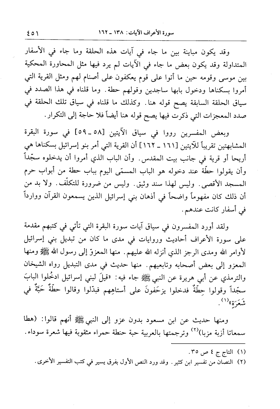 (2) النصان من تفسير ابن كثير. وقد ورد النص الأول بفرق يسير في كتب التفسير الأخرى.