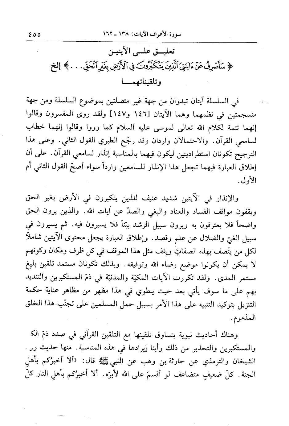 تعليق على الآيتين سَأَصْرِفُ عَنْ آياتِيَ الَّذِينَ يَتَكَبَّرُونَ فِي الْأَرْضِ بِغَيْرِ الْحَقِّ ... إلخ وتلقيناتهما