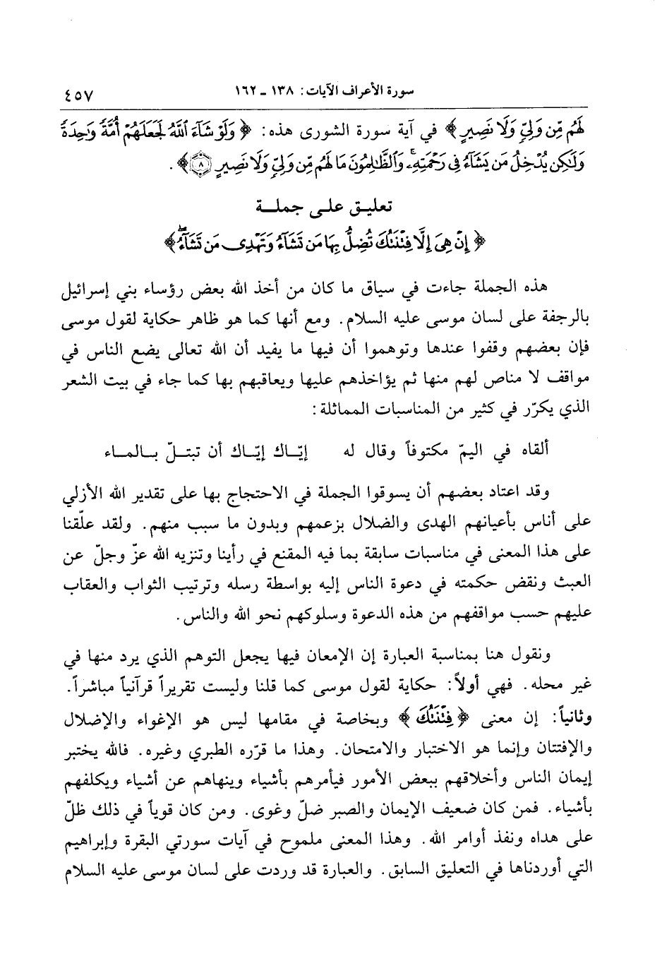 تعليق على جملة إِنْ هِيَ إِلَّا فِتْنَتُكَ تُضِلُّ بِها مَنْ تَشاءُ وَتَهْدِي مَنْ تَشاءُ