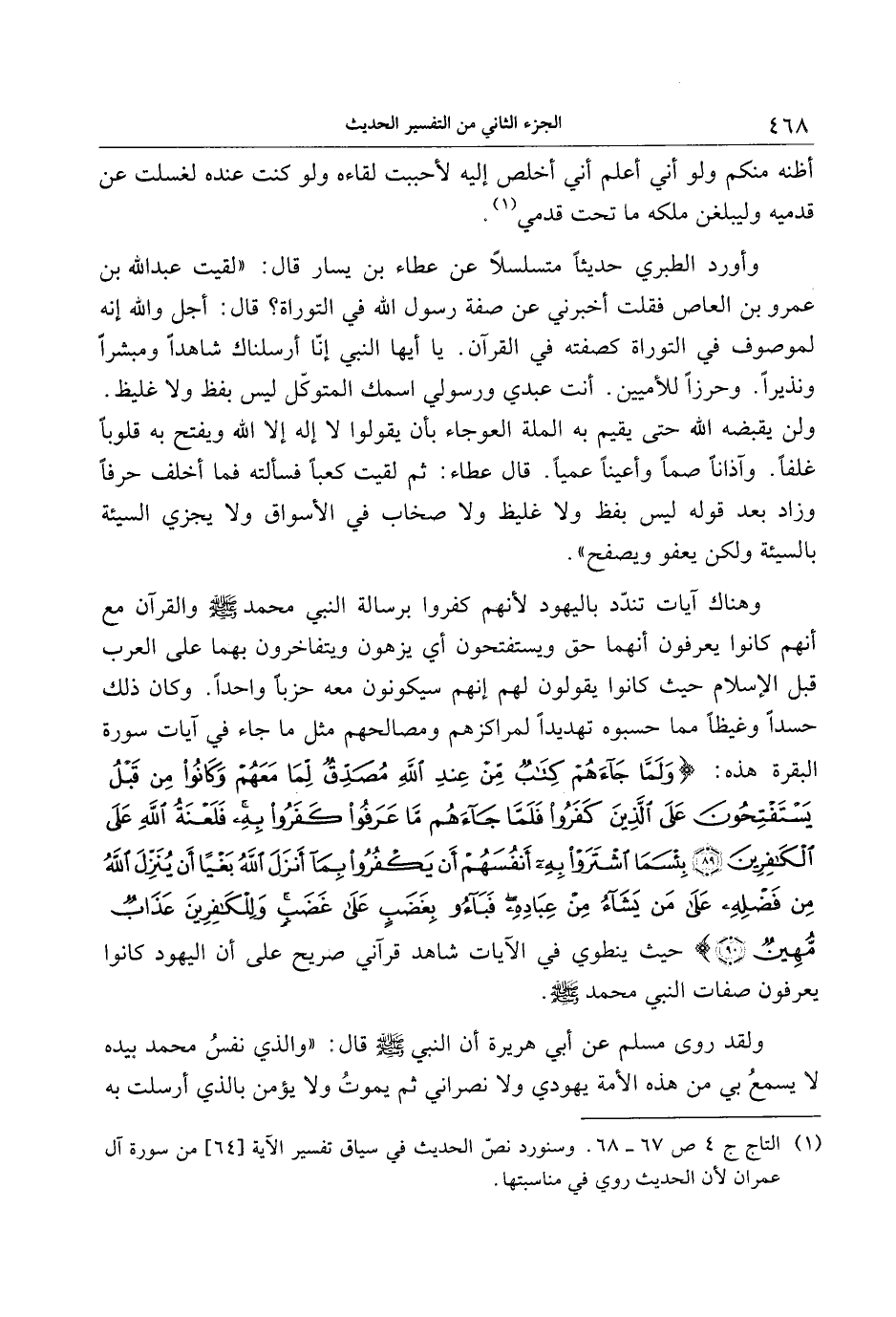 (1) التاج ج 4 ص 67- 68. وسنورد نصّ الحديث في سياق تفسير الآية [64] من سورة آل عمران لأن الحديث روي في مناسبتها.