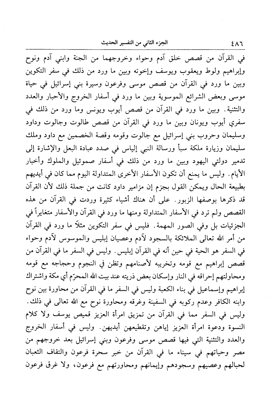 وليس في السفر مما في القرآن من تمزيق امرأة العزيز قميص يوسف ولا كلام النسوة ودعوة امرأة العزيز إياهن وتقطيعهن أيديهن. وليس في أسفار الخروج والعدد والتثنية التي فيها قصص موسى وفرعون وبني إسرائيل بعد خروجهم من مصر وحياتهم في سيناء ما في القرآن من خبر سحرة فرعون والتقاف الثعبان لحبالهم وعصيهم وسجودهم وإيمانهم ومحاورتهم مع فرعون، ولا غرق فرعون