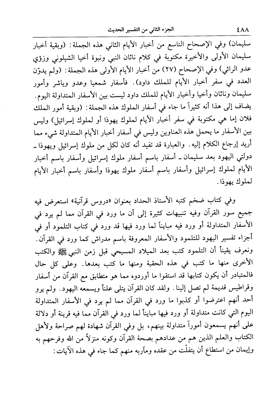 وفي كتاب ضخم كتبه الأستاذ الحداد بعنوان «دروس قرآنية» استعرض فيه جميع سور القرآن وفيه تنبيهات كثيرة إلى أن ما ورد في القرآن مما لم يرد في الأسفار المتداولة أو ورد فيه مباينا لما ورد فيها قد ورد في كتاب التلمود أو في أجزاء تفسير اليهود للتلمود والأسفار المعروفة باسم مدراش كما ورد في القرآن.
