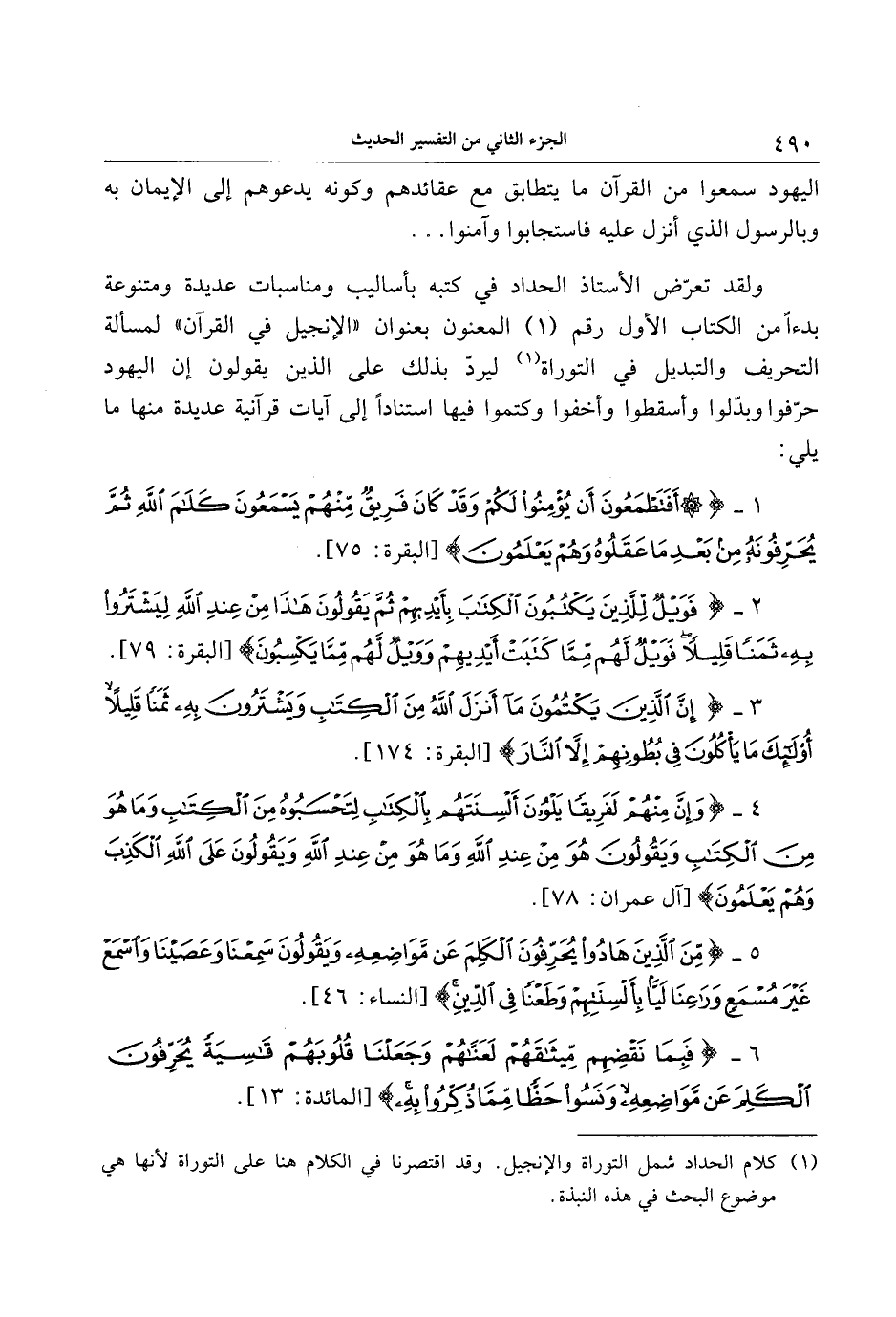 (1) كلام الحداد شمل التوراة والإنجيل. وقد اقتصرنا في الكلام هنا على التوراة لأنها هي موضوع البحث في هذه النبذة.