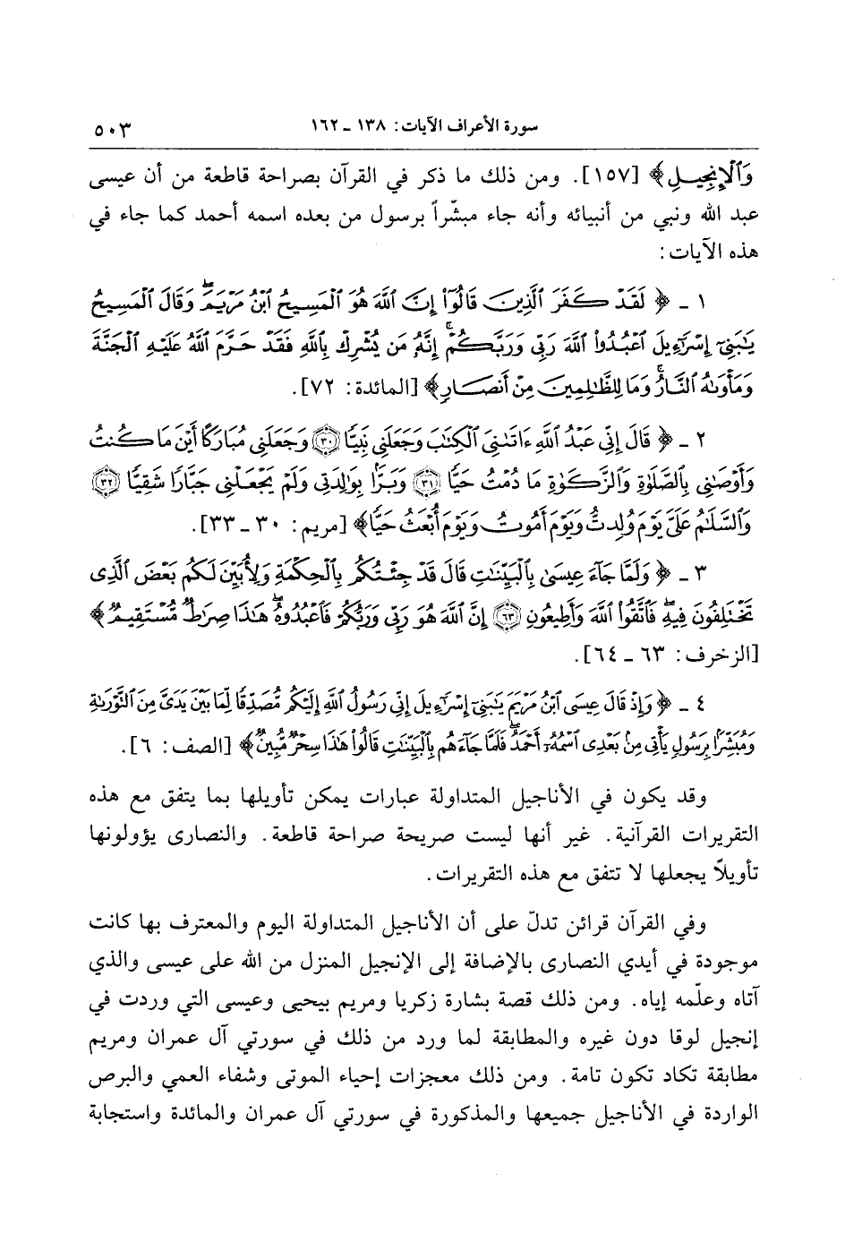[157] . ومن ذلك ما ذكر في القرآن بصراحة قاطعة من أن عيسى عبد الله ونبي من أنبيائه وأنه جاء مبشّرا برسول من بعده اسمه أحمد كما جاء في هذه الآيات: