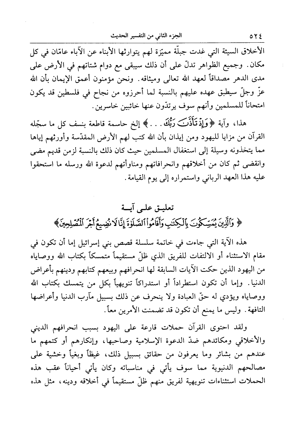 تعليق على آية وَالَّذِينَ يُمَسِّكُونَ بِالْكِتابِ وَأَقامُوا الصَّلاةَ إِنَّا لا نُضِيعُ أَجْرَ الْمُصْلِحِينَ