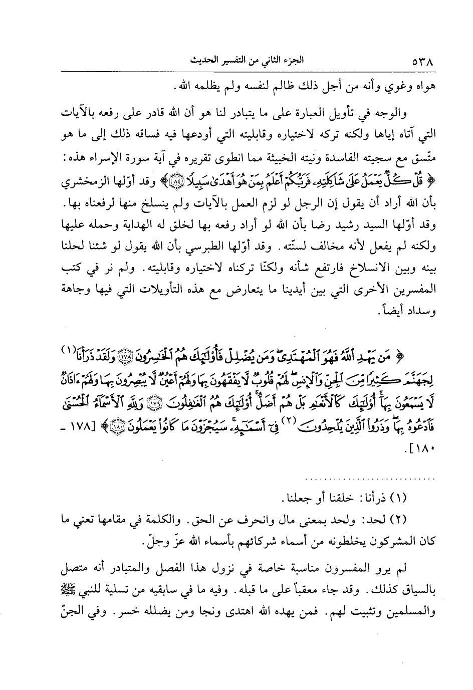 مَنْ يَهْدِ اللَّهُ فَهُوَ الْمُهْتَدِي وَمَنْ يُضْلِلْ فَأُولئِكَ هُمُ الْخاسِرُونَ (178) وَلَقَدْ ذَرَأْنا لِجَهَنَّمَ كَثِيراً مِنَ الْجِنِّ وَالْإِنْسِ لَهُمْ قُلُوبٌ لا يَفْقَهُونَ بِها وَلَهُمْ أَعْيُنٌ لا يُبْصِرُونَ بِها وَلَهُمْ آذانٌ لا يَسْمَعُونَ بِها أُولئِكَ كَالْأَنْعامِ بَلْ هُمْ أَضَلُّ أُولئِكَ هُمُ الْغافِلُونَ (179) وَلِلَّهِ الْأَسْماءُ الْحُسْنى فَادْعُوهُ بِها وَذَرُوا الَّذِينَ يُلْحِدُونَ فِي أَسْمائِهِ سَيُجْزَوْنَ ما كانُوا يَعْمَلُونَ (180)