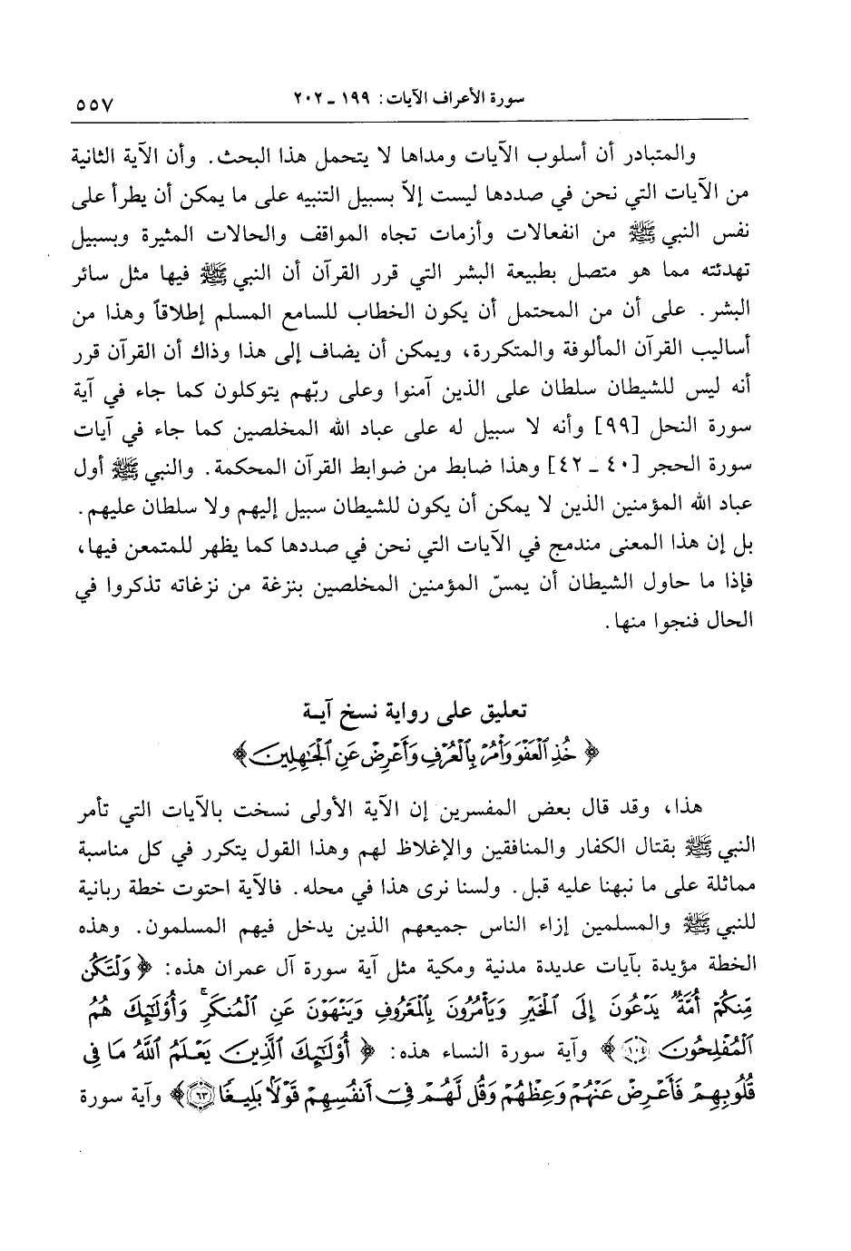 تعليق على رواية نسخ آية خُذِ الْعَفْوَ وَأْمُرْ بِالْعُرْفِ وَأَعْرِضْ عَنِ الْجاهِلِينَ
