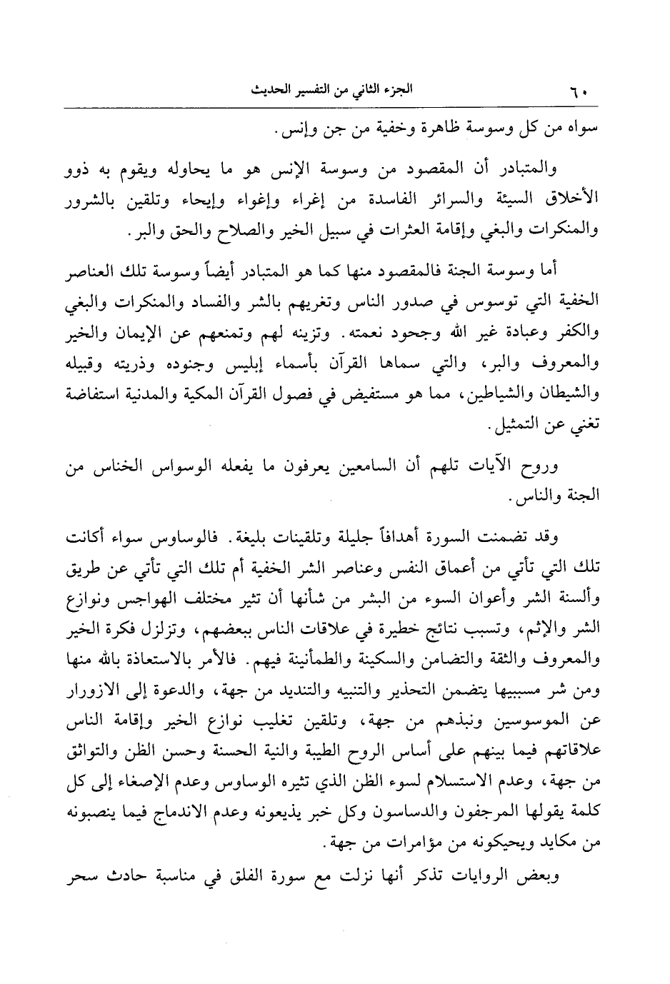 والمتبادر أن المقصود من وسوسة الإنس هو ما يحاوله ويقوم به ذوو الأخلاق السيئة والسرائر الفاسدة من إغراء وإغواء وإيحاء وتلقين بالشرور والمنكرات والبغي وإقامة العثرات في سبيل الخير والصلاح والحق والبر.