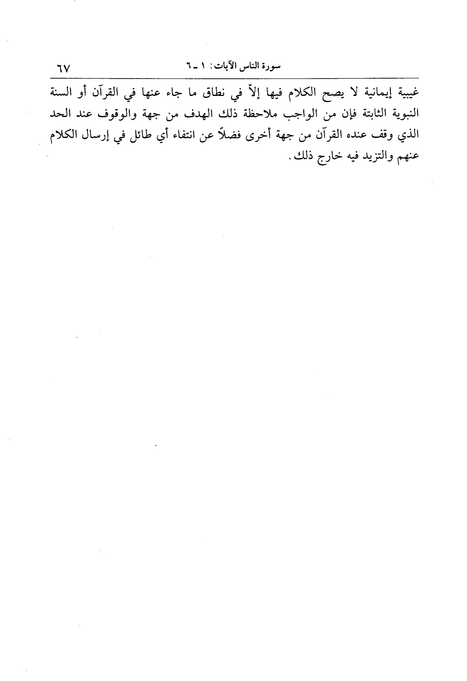 غيبية إيمانية لا يصح الكلام فيها إلّا في نطاق ما جاء عنها في القرآن أو السنة النبوية الثابتة فإن من الواجب ملاحظة ذلك الهدف من جهة والوقوف عند الحد الذي وقف عنده القرآن من جهة أخرى فضلا عن انتفاء أي طائل في إرسال الكلام عنهم والتزيد فيه خارج ذلك.