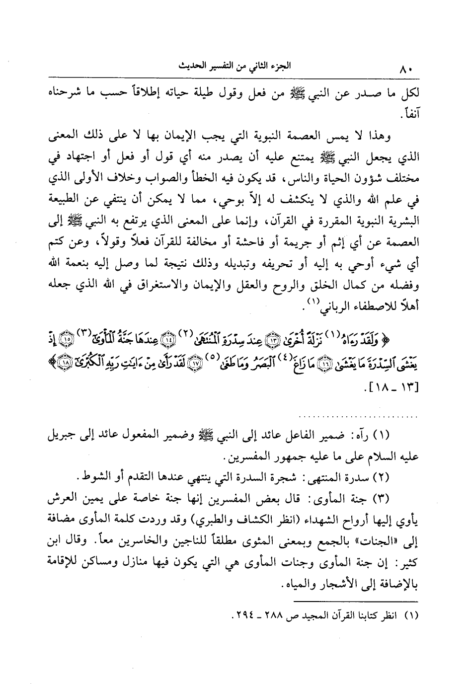وَلَقَدْ رَآهُ نَزْلَةً أُخْرى (13) عِنْدَ سِدْرَةِ الْمُنْتَهى (14) عِنْدَها جَنَّةُ الْمَأْوى (15) إِذْ يَغْشَى السِّدْرَةَ ما يَغْشى (16) ما زاغَ الْبَصَرُ وَما طَغى (17)