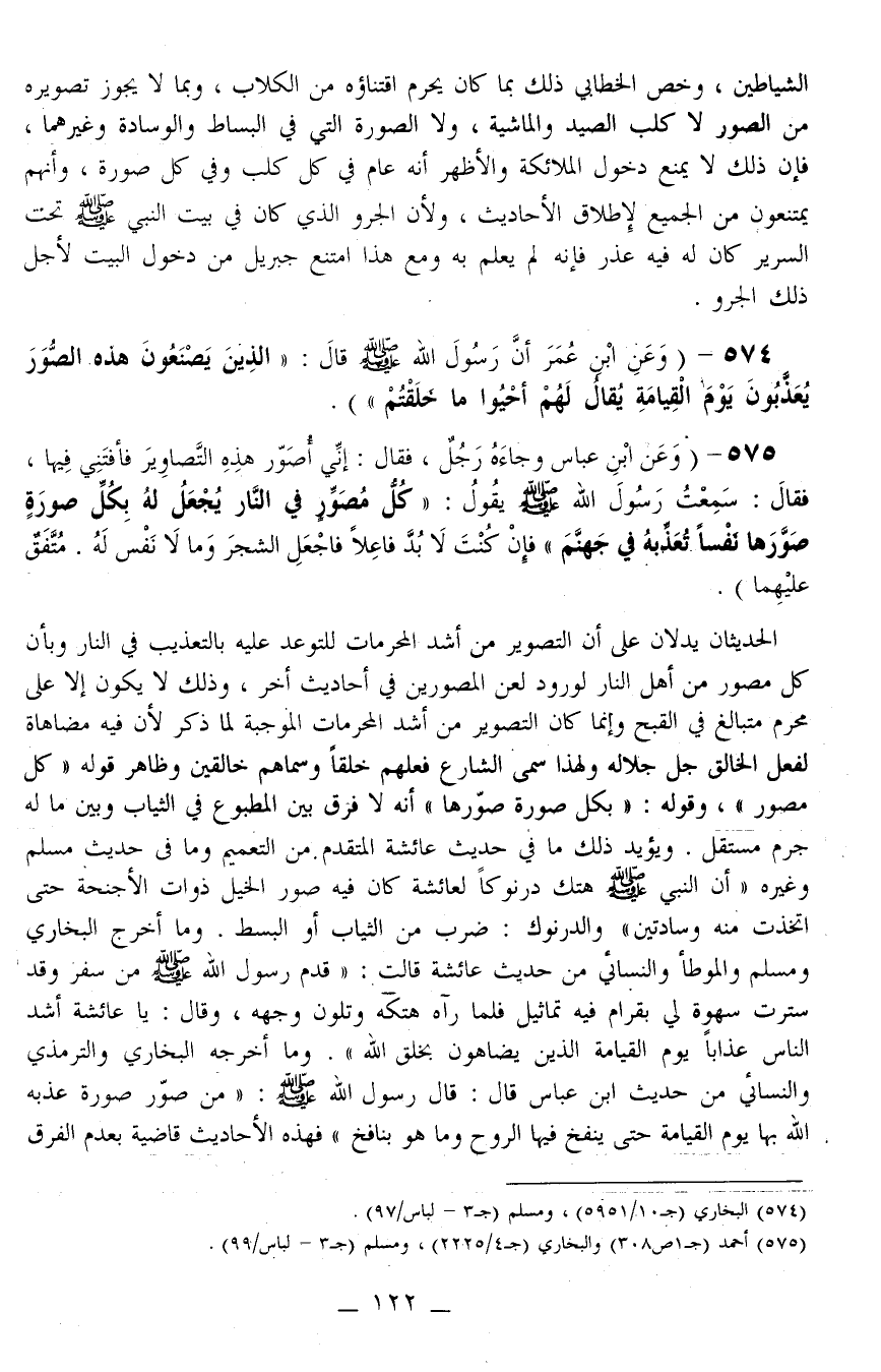 574 - (وَعَنْ ابْنِ عُمَرَ أَنَّ رَسُولَ اللَّهِ - صَلَّى اللَّهُ عَلَيْهِ وَسَلَّمَ - قَالَ: «الَّذِينَ يَصْنَعُونَ هَذِهِ الصُّوَرَ يُعَذَّبُونَ يَوْمَ الْقِيَامَةِ يُقَالُ لَهُمْ: أَحْيُوا مَا خَلَقْتُمْ» )