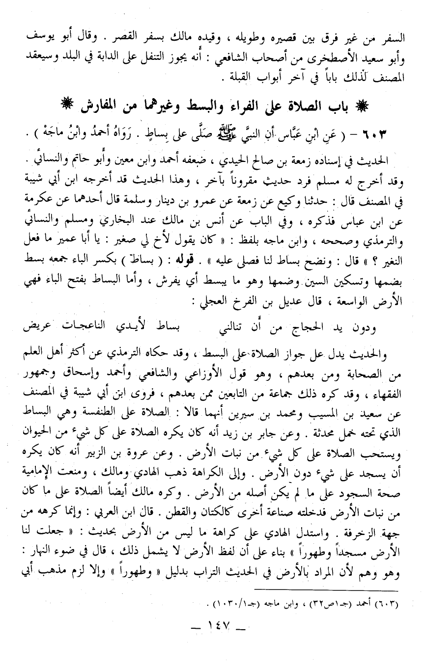 603 - (عَنْ ابْنِ عَبَّاسٍ «أَنَّ النَّبِيَّ - صَلَّى اللَّهُ عَلَيْهِ وَسَلَّمَ - صَلَّى عَلَى بِسَاطٍ» . رَوَاهُ أَحْمَدُ وَابْنُ مَاجَهْ) .