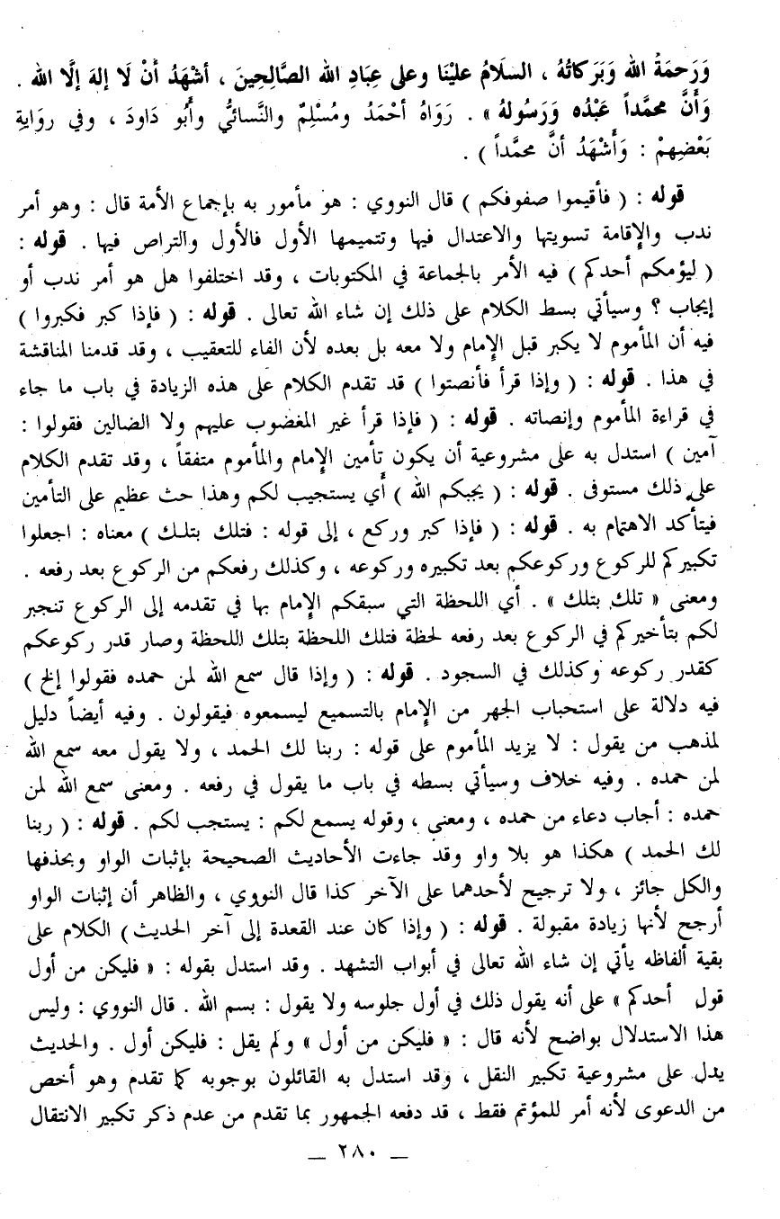 ـــــــــــــــــــــــــــــQقَوْلُهُ: (فَأَقِيمُوا صُفُوفَكُمْ) قَالَ النَّوَوِيُّ: هُوَ مَأْمُورٌ بِهِ بِإِجْمَاعِ الْأُمَّةِ قَالَ: وَهُوَ أَمْرُ نَدْبٍ وَالْإِقَامَةُ تَسْوِيَتُهَا وَالِاعْتِدَالُ فِيهَا وَتَتْمِيمُهَا الْأَوَّلُ فَالْأَوَّلُ وَالتَّرَاصُّ فِيهَا. قَوْلُهُ: (لِيَؤُمَّكُمْ أَحَدُكُمْ) فِيهِ الْأَمْرُ بِالْجَمَاعَةِ فِي الْمَكْتُوبَاتِ، وَقَدْ اخْتَلَفُوا هَلْ هُوَ أَمْرُ نَدْبٍ أَوْ إيجَابٍ؟ وَسَيَأْتِي بَسْطُ الْكَلَامِ عَلَى ذَلِكَ إنْ شَاءَ اللَّهُ تَعَالَى. قَوْلُهُ: (فَإِذَا كَبَّرَ فَكَبِّرُوا) فِيهِ أَنَّ الْمَأْمُومَ لَا يُكَبِّرُ قَبْلَ الْإِمَامِ وَلَا مَعَهُ بَلْ بَعْدَهُ لِأَنَّ الْفَاءَ لِلتَّعْقِيبِ، وَقَدْ قَدَّمْنَا الْمُنَاقَشَةَ فِي هَذَا. قَوْلُهُ: (وَإِذَا قَرَأَ فَأَنْصِتُوا) قَدْ تَقَدَّمَ الْكَلَامُ عَلَى هَذِهِ الزِّيَادَةِ فِي بَابِ مَا جَاءَ فِي قِرَاءَةِ الْمَأْمُومِ وَإِنْصَاتِهِ
