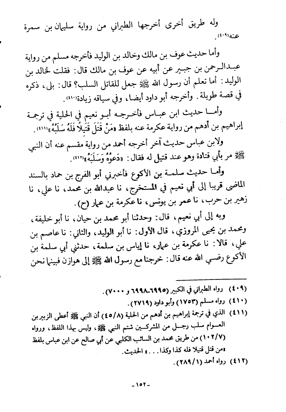 وأما حديث ابن عباس فأخرجه أبو نعيم في الحلية في ترجمة إبراهيم بن أدهم من رواية عكرمة عنه بلفظ "مَنْ قَتَلَ قَتَيلًا فَلَهُ سَلَبُهُ" (¬411).