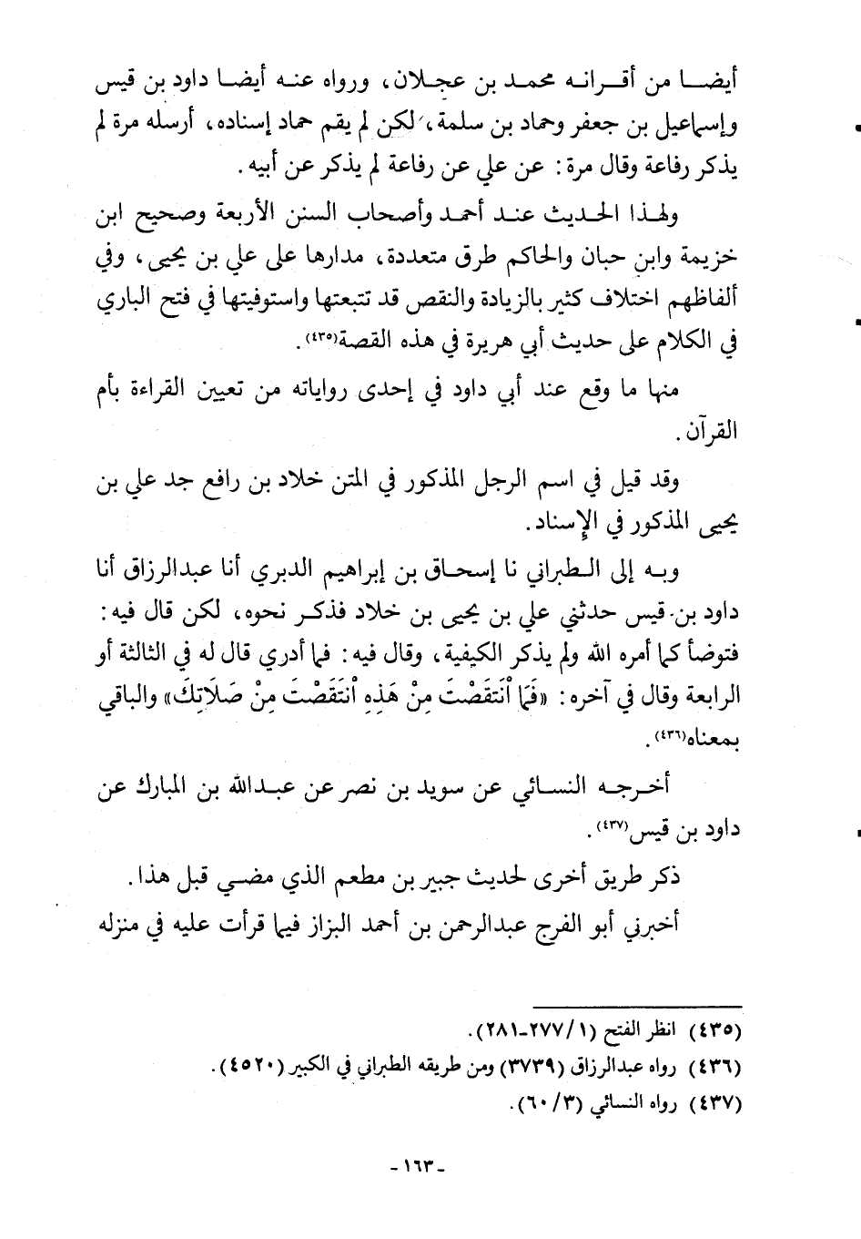 ولهذا الحديث عند أحمد وأصحاب السنن الأربعة وصحيح ابن خزيمة وابن حبان والحاكم طرق متعددة، مدارها على علي بن يحيى، وفي ألفاظهم اختلاف كثير بالزيادة والنقص قد تتبعتها واستوفيتها في فتح الباري في الكلام على حديث أبي هريرة في هذه القصة (¬435).