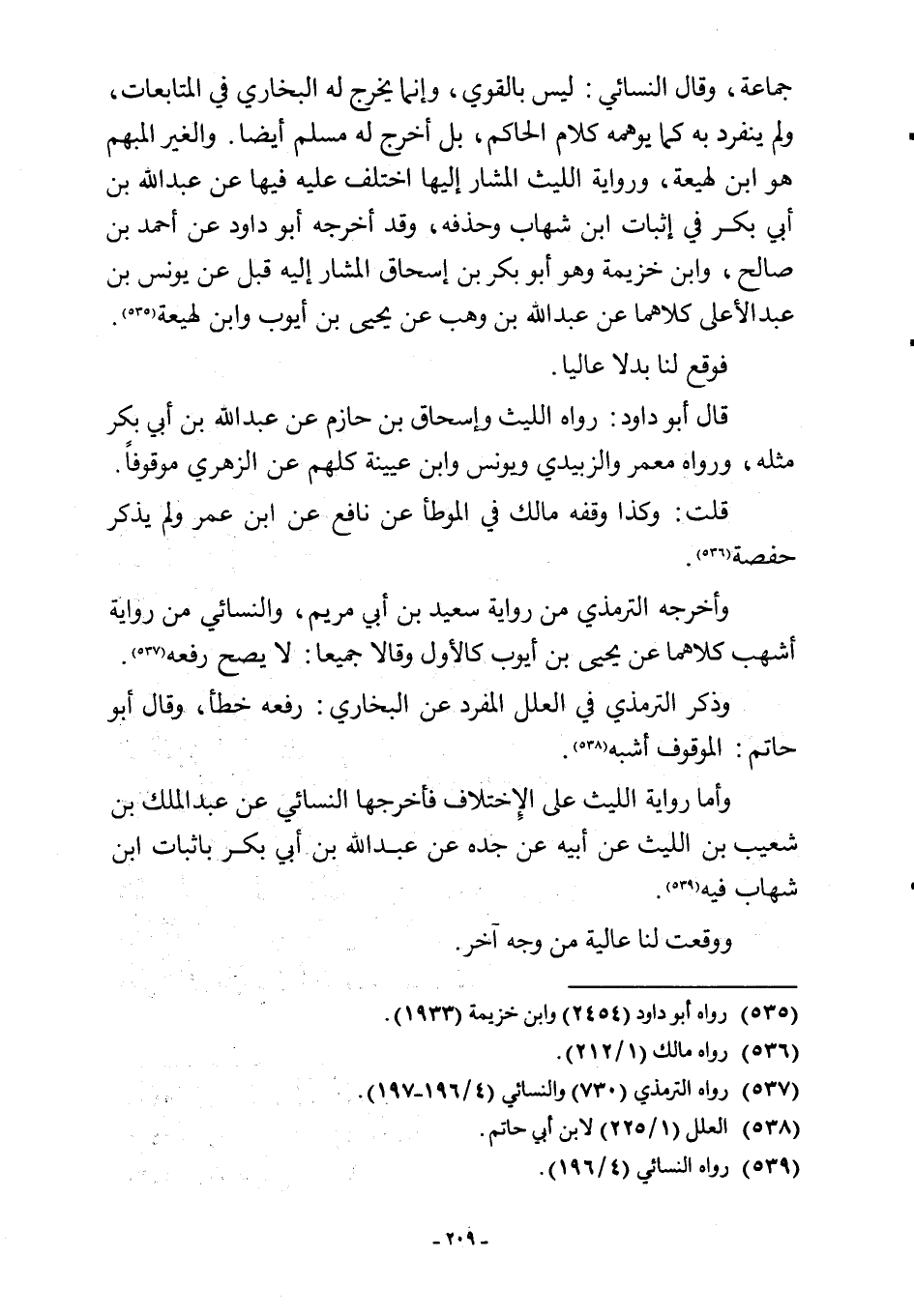 وأما رواية الليث على الإختلاف فأخرجها النسائي عن عبد الملك بن شعيب بن الليث عن أبيه عن جده عن عبد اللَّه بن أبي بكر باثبات ابن شهاب فيه (¬539).