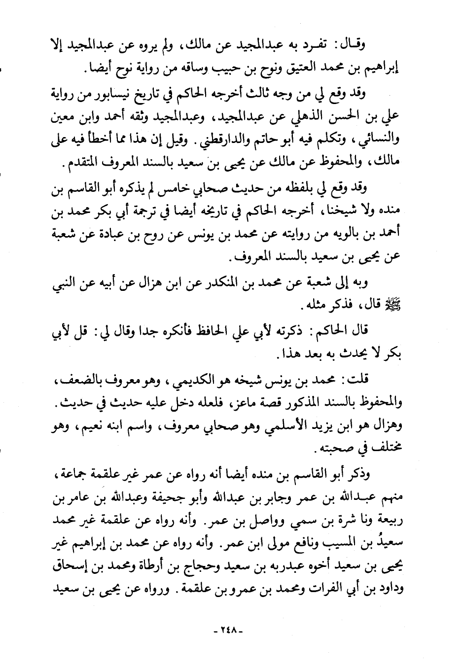 وقد وقع لي بلفظه من حديث صحابي خامس لم يذكره أبو القاسم بن منده ولا شيخنا، أخرجه الحاكم في تاريخه أيضا في ترجمة أبي بكر محمد بن أحمد بن بالويه من روايته عن محمد بن يونس عن روح بن عبادة عن شعبة عن يحيى بن سعيد بالسند المعروف.