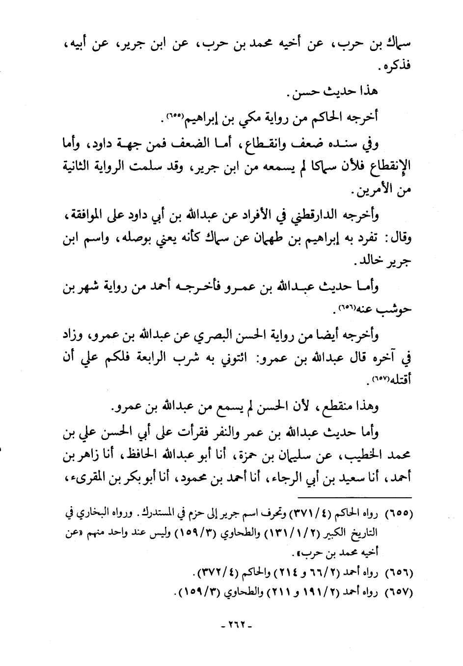 (¬655) رواه الحاكم (4/ 371) وتحرف اسم جرير إلى حزم في المستدرك. ورواه البخاري في التاريخ الكبير (2/ 1/ 131) والطحاوي (3/ 159) وليس عند واحد منهم "عن أخيه محمد بن حرب".