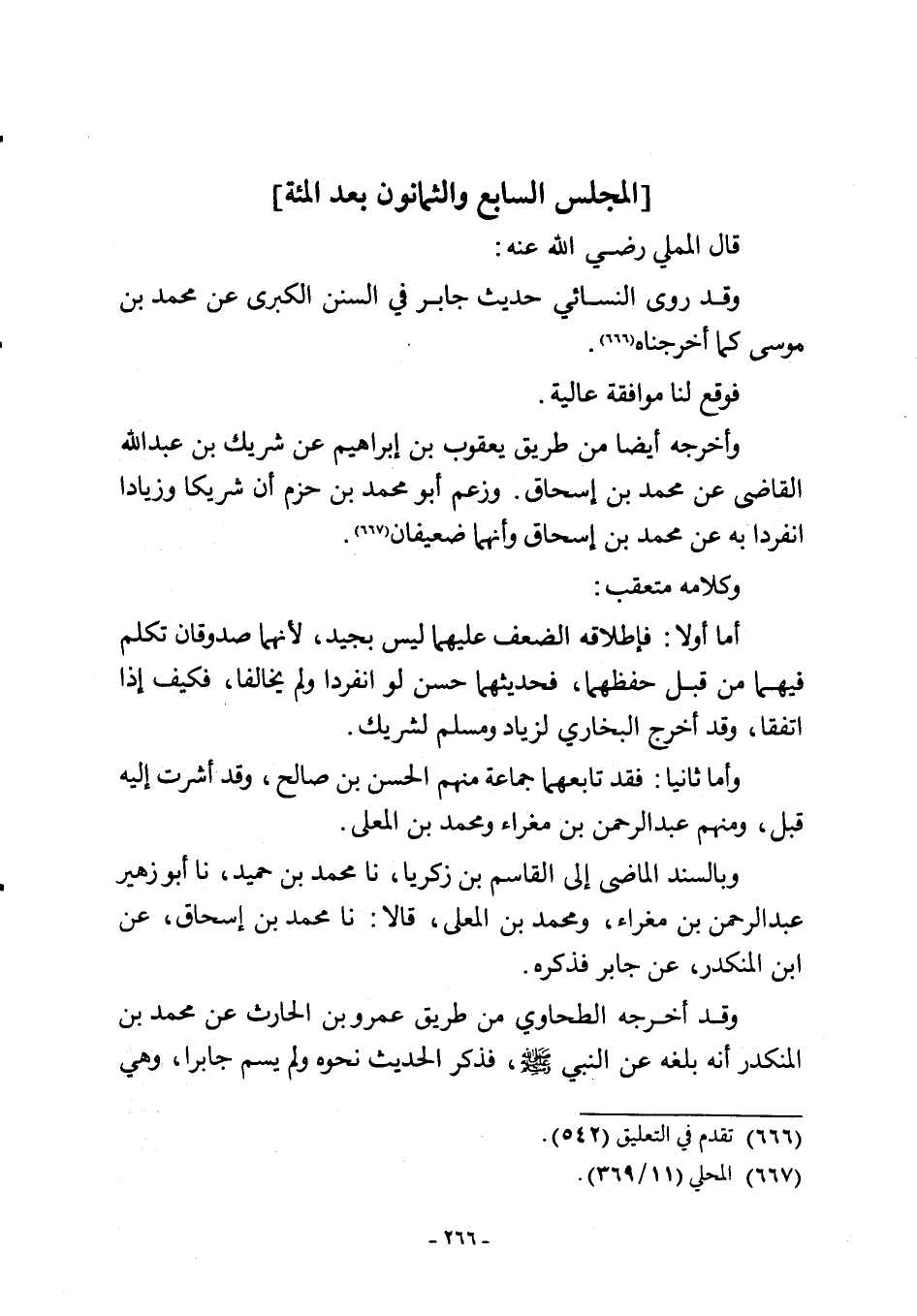 وبالسند الماضى إلى القاسم بن زكريا، نا محمد بن حميد، نا أبو زهير عبد الرحمن بن مغراء، ومحمد بن المعلى، قالا: نا محمد بن إسحاق، عن ابن المنكدر، عن جابر فذكره.