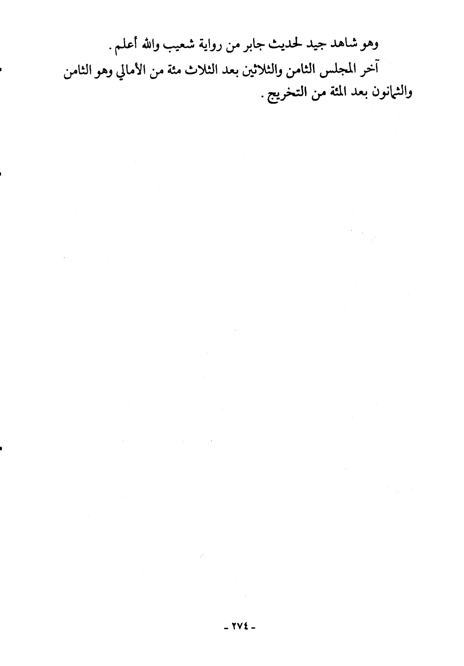 آخر المجلس الثامن والثلاثين بعد الثلاث مئة من الأمالي وهو الثامن والثمانون بعد المئة من التخريج.