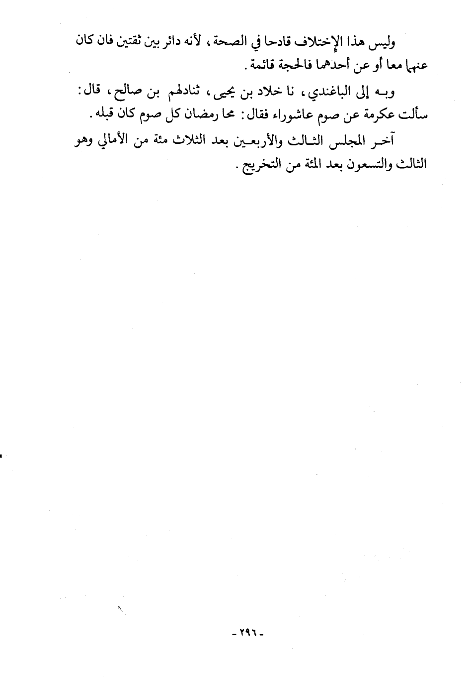 وبه إلى الباغندي، نا خلاد بن يحيى، ثنا دلهم بن صالح، قال: سألت عكرمة عن صوم عاشوراء فقال: محا رمضان كل صوم كان قبله.