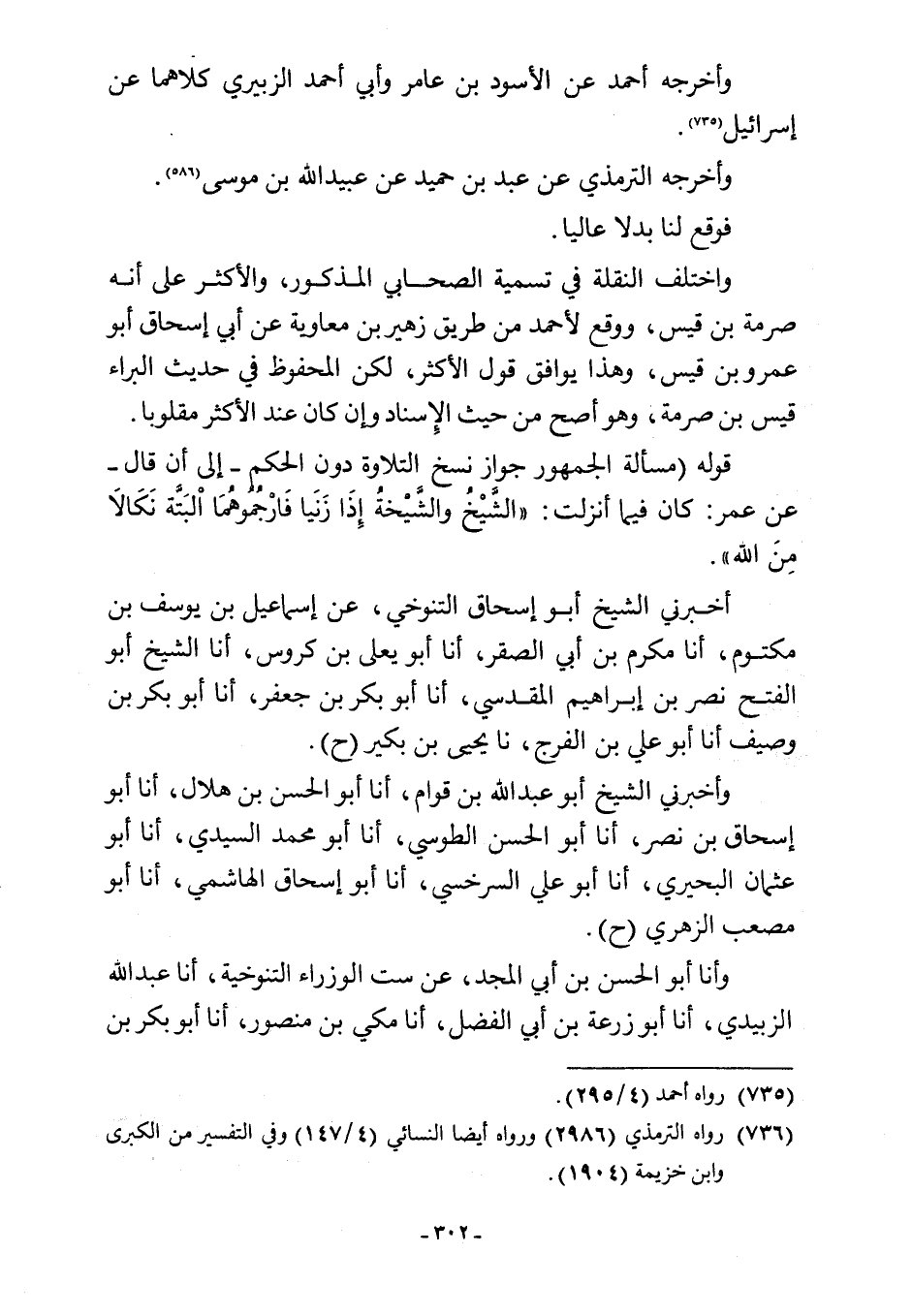 وأخبرني الشيخ أبو عبد اللَّه بن قوام، أنا أبو الحسن بن هلال، أنا أبو إسحاق بن نصر، أنا أبو الحسن الطوسي، أنا أبو محمد السيدي، أنا أبو عثمان البحيري، أنا أبو علي السرخسي، أنا أبو إسحاق الهاشمي، أنا أبو مصعب الزهري (ح).