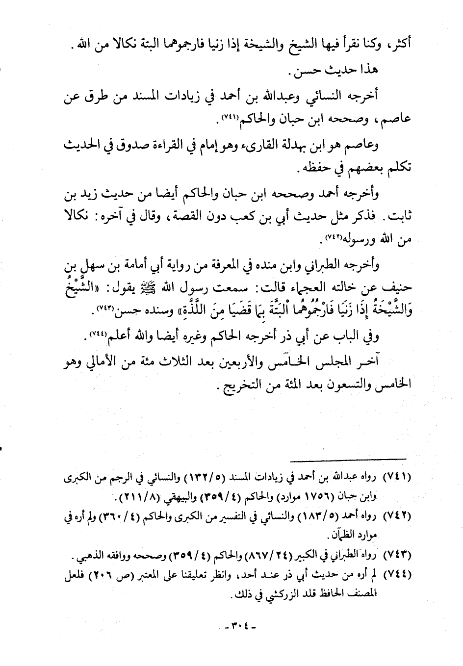 (¬741) رواه عبد اللَّه بن أحمد في زيادات المسند (5/ 132) والنسائي في الرجم من الكبرى وابن حبان (1756 موارد) والحاكم (4/ 359) والبيهقي (8/ 211).