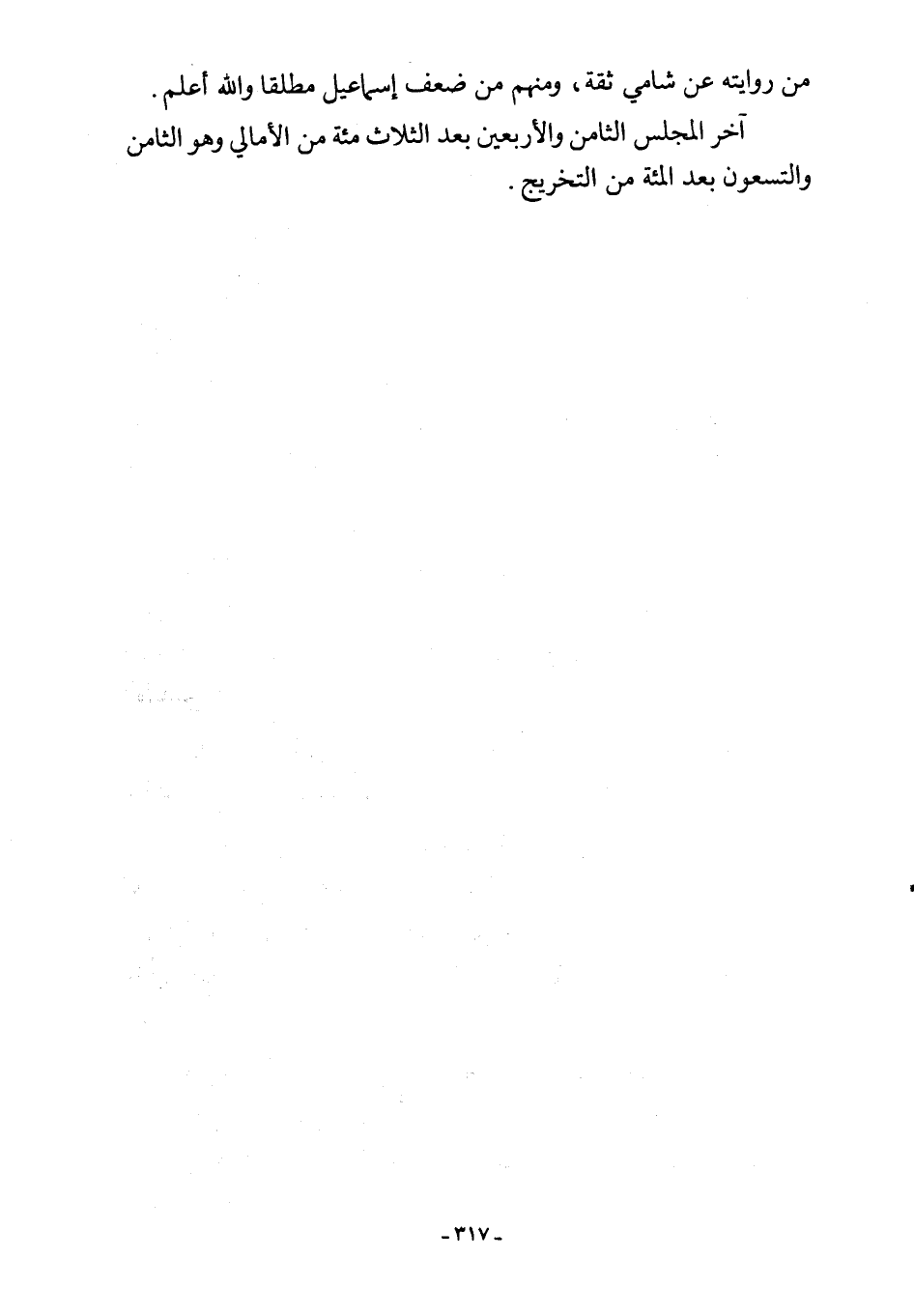 آخر المجلس الثامن والأربعين بعد الثلاث مئة من الأمالي وهو الثامن والتسعون بعد المئة من التخريج.