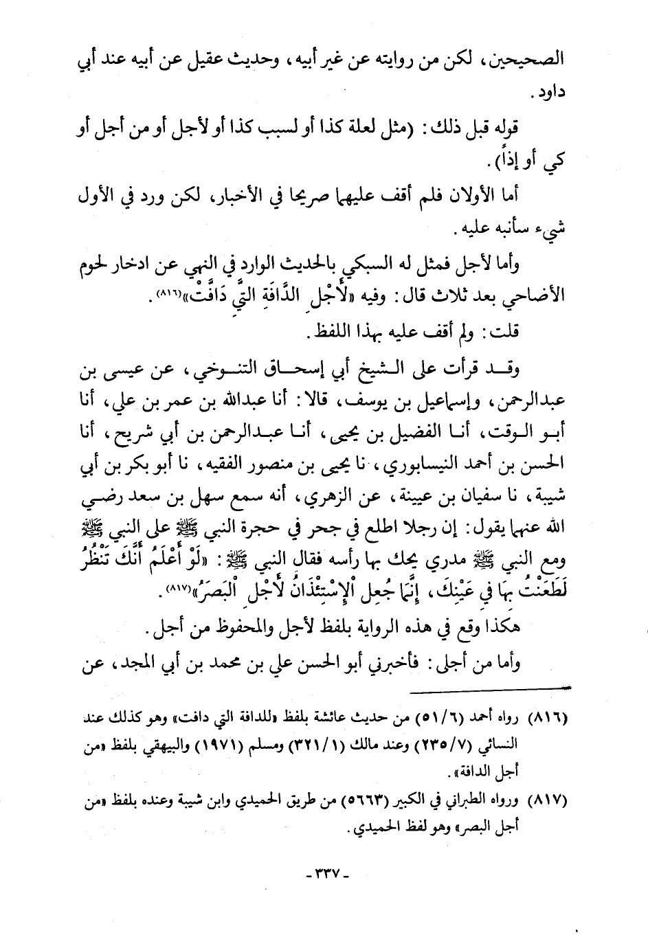 (¬816) رواه أحمد (6/ 51) من حديث عائشة بلفظ "للدافة التي دافت" وهو كذلك عند النسائي (7/ 235) وعند مالك (1/ 321) ومسلم (1971) والبيهقي بلفظ "من أجل الدافة".