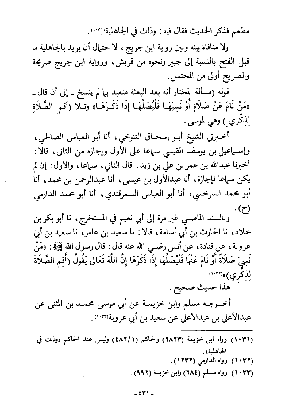 أخرجه مسلم وابن خزيمة عن أبي موسى محمد بن المثنى عن عبد الأعلي بن عبد الأعلى عن سعيد بن أبي عروبة (¬1033).