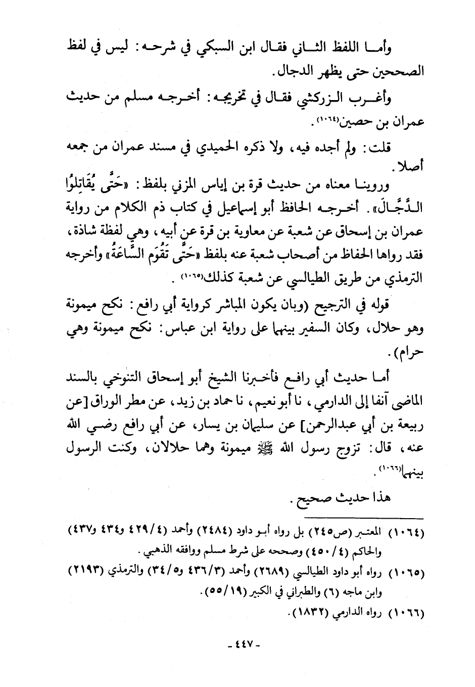 وأما اللفظ الثاني فقال ابن السبكي في شرحه: ليس في لفظ الصححين حتى يظهر الدجال.