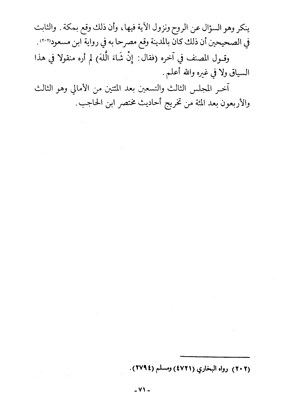 آخر المجلس الثالث والتسعين بعد المئتين من الأمالي وهو الثالث والأربعون بعد المئة من تخريج أحاديث مختصر ابن الحاجب.