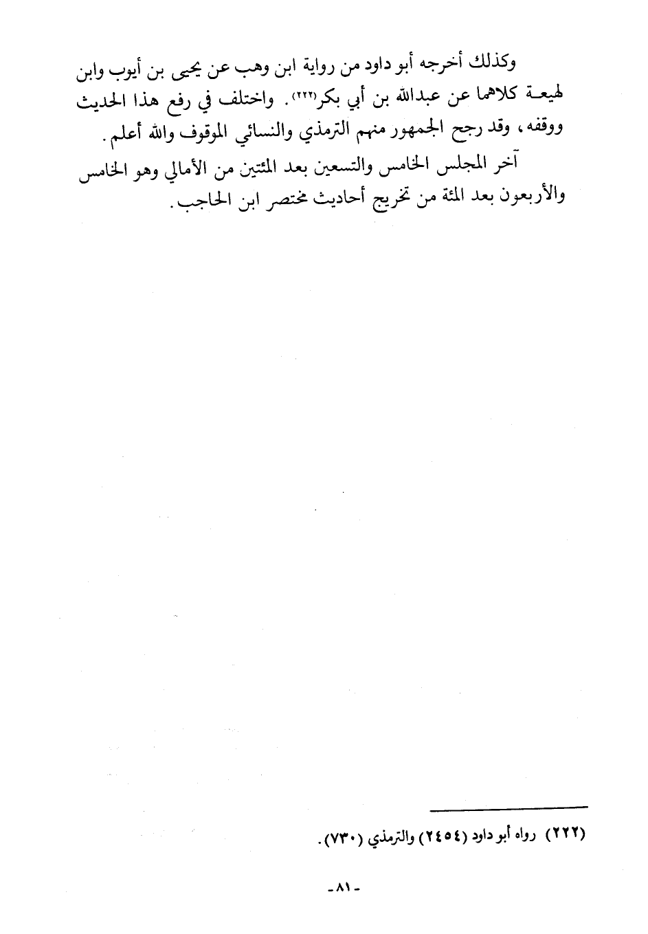آخر المجلس الخامس والتسعين بعد المئتين من الأمالي وهو الخامس والأربعون بعد المئة من تخريج أحاديث مختصر ابن الحاجب.