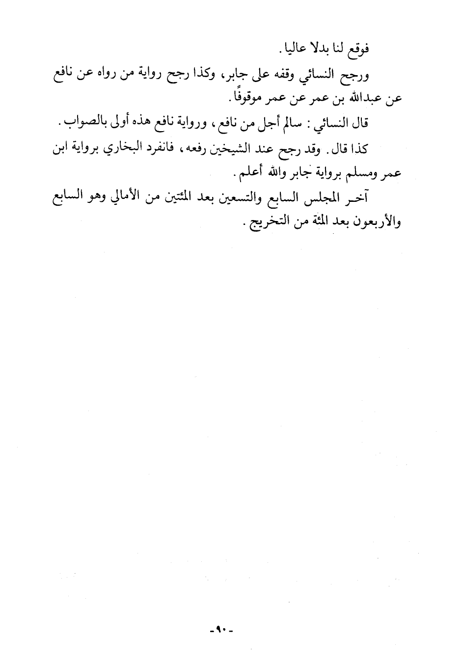 ورجح النسائي وقفه على جابر، وكذا رجح رواية من رواه عن نافع عن عبد اللَّه بن عمر عن عمر موقوفًا.