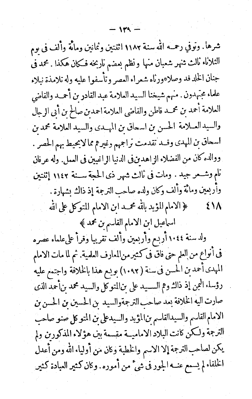 الإِمَام الْمُؤَيد بِاللَّه مُحَمَّد ابْن الإِمَام المتَوَكل على الله إِسْمَاعِيل ابْن الإِمَام الْقَاسِم بن مُحَمَّد