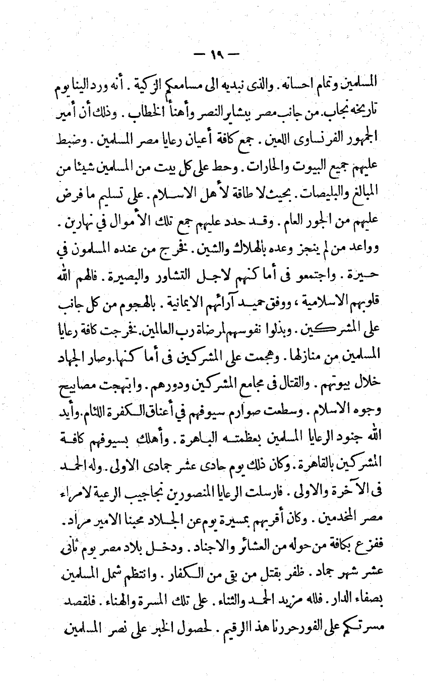 وأيد الله جنود الرعايا الْمُسلمين بعظمته الباهرة