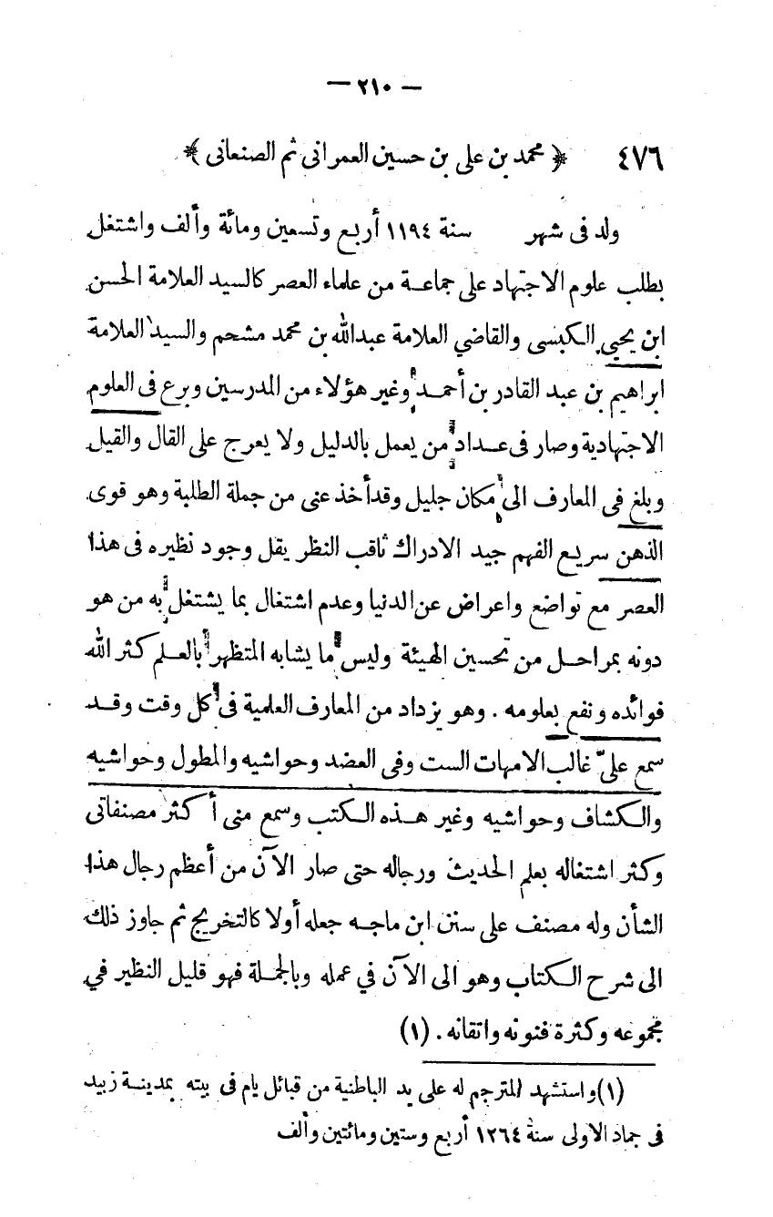 مُحَمَّد بن على بن حُسَيْن العمراني ثمَّ الصنعاني