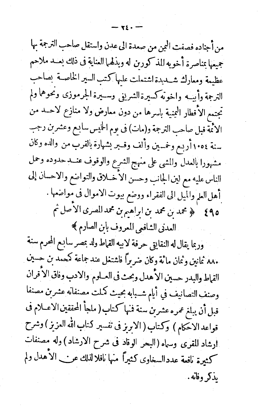 495 - مُحَمَّد بن مُحَمَّد بن إِبْرَاهِيم بن مُحَمَّد الْمصْرِيّ الأَصْل ثمَّ الْعَدنِي الشَّافِعِي الْمَعْرُوف بِابْن الصارم