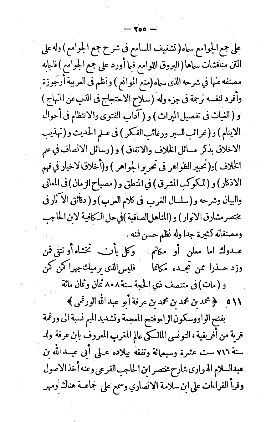 بِفَتْح الْوَاو وَسُكُون الرَّاء وَفتح الْمُعْجَمَة وَتَشْديد الْمِيم نِسْبَة إِلَى ورغمة قَرْيَة من أفريقية التونسي المالكي عَالم الْمغرب الْمَعْرُوف بِابْن عَرَفَة ولد سنة 716 سِتّ عشرَة وَسَبْعمائة وتفقه ببلاده على أبي عبد الله بن عبد السَّلَام الهواري شَارِح مُخْتَصر ابْن الْحَاجِب الفرعي وَعنهُ أَخذ الْأُصُول وَقَرَأَ الْقرَاءَات على ابْن سَلامَة الْأنْصَارِيّ وَسمع على جمَاعَة هُنَاكَ وَمهر