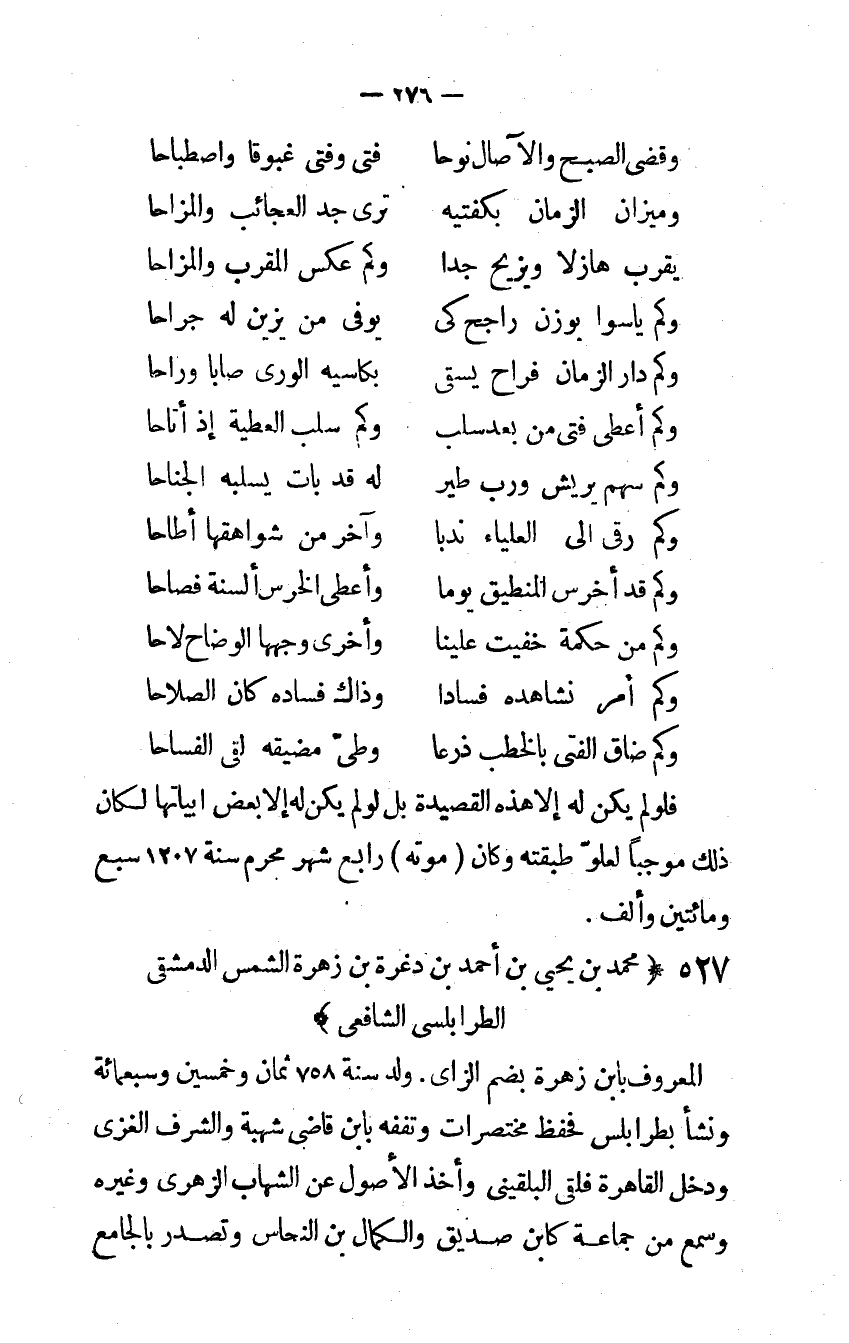 فَلَو لم يكن لَهُ إِلَّا هَذِه القصيدة بل لَو لم يكن لَهُ إِلَّا بعض أبياتها لَكَانَ ذَلِك مُوجبا لعلو طبقته وَكَانَ مَوته رَابِع شهر محرم سنة 1207 سبع وَمِائَتَيْنِ وَألف