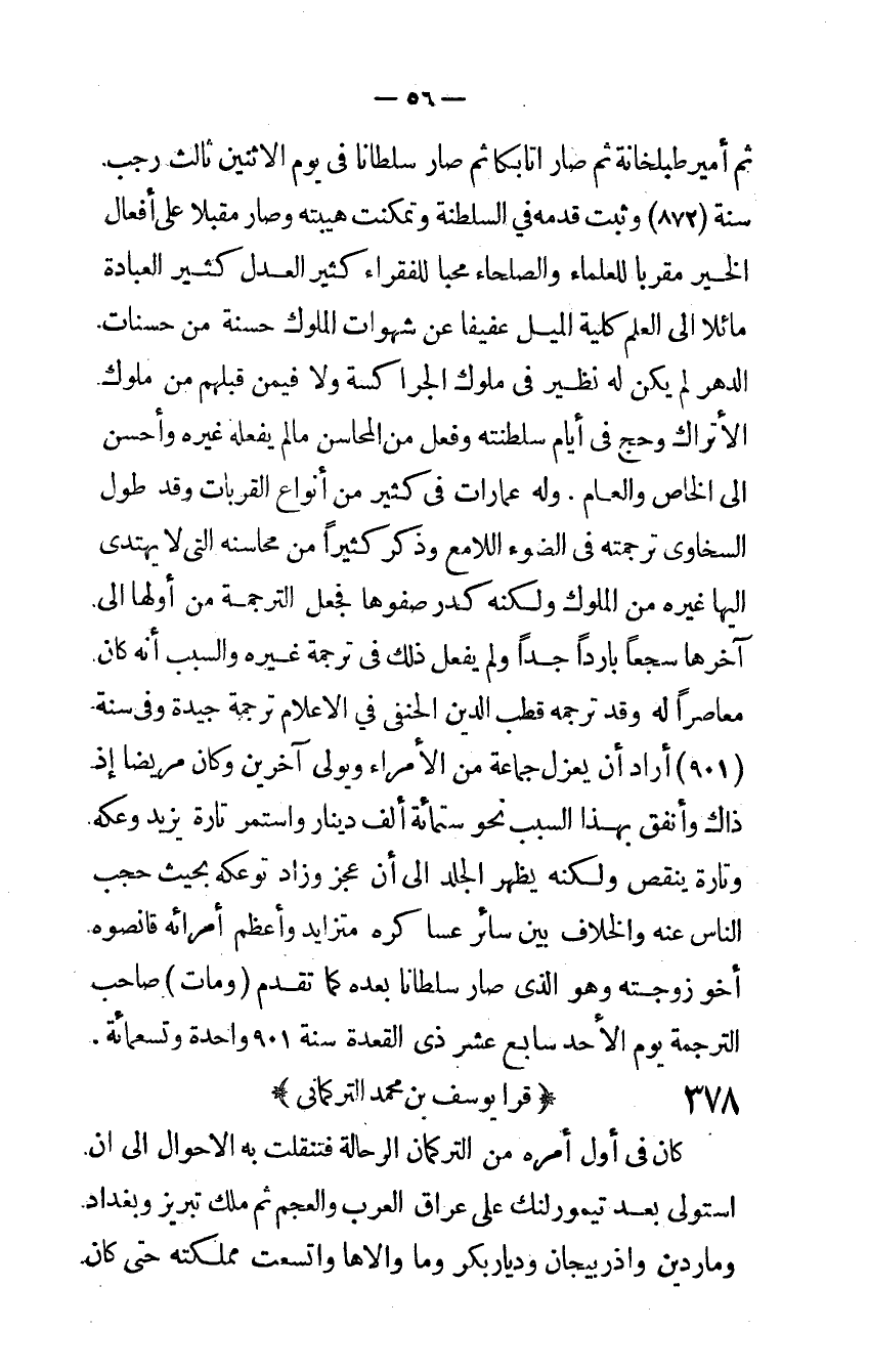 كَانَ في أول أمره من التركمان الرحالة فتنقلت بِهِ الْأَحْوَال إِلَى أن استولى بعد تيمورلنك على عراق الْعَرَب والعجم ثمَّ ملك تبريز وبغداد وماردين وأذربيجان ودياربكر وَمَا والاها واتسعت مَمْلَكَته حَتَّى كَانَ