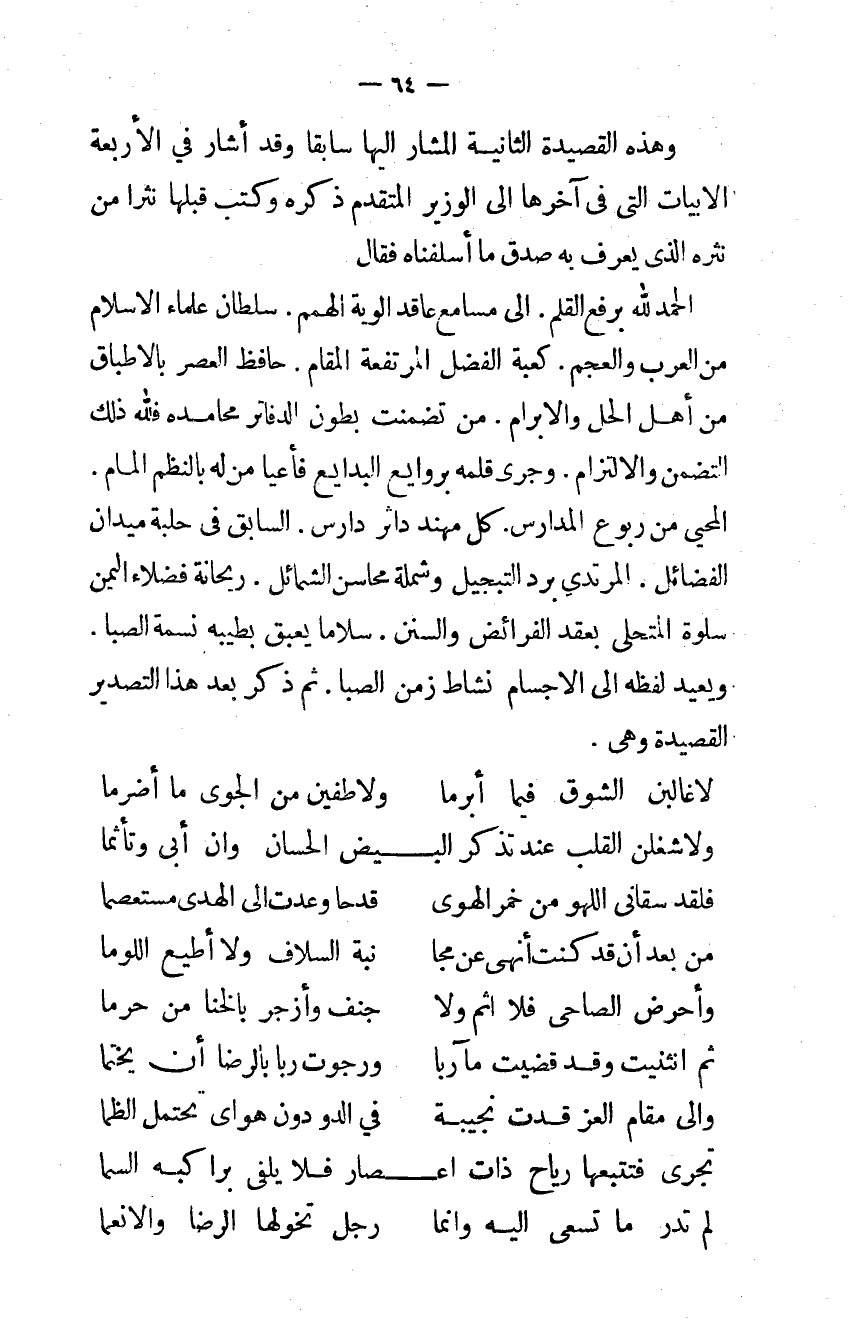 ثمَّ ذكر بعد هَذَا التصدير القصيدة وهي