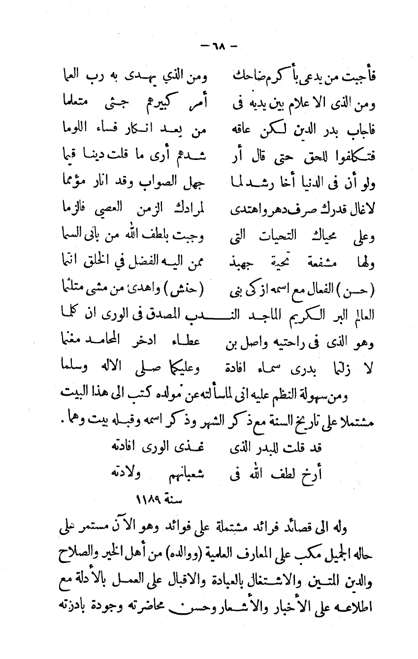 (أرخ لطف الله في ... شعبانهم وِلَادَته) سنة 1189