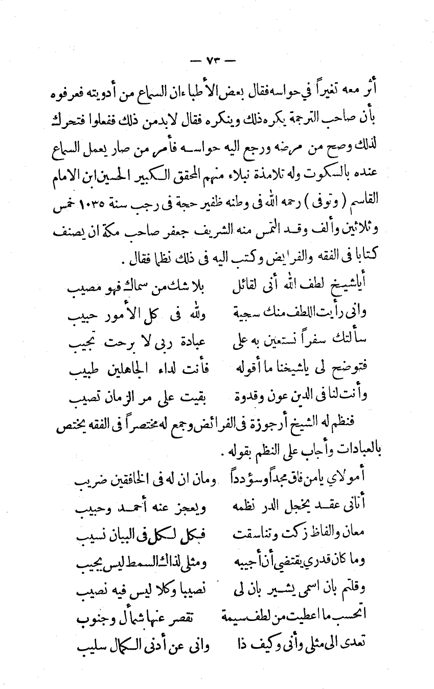 (أياشيخ لطف الله أَنى لقَائِل ... بِلَا شك من سماك فَهُوَ مُصِيب)
